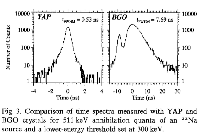2. 為了使PET掃描儀在高計數率的狀態下工作,需要使時間計數損失盡可能小,因此晶體應具有較短的發光衰減時間。此外,如果晶體的發光衰減時間短,則可以減小重合時間窗口,并且可以減小隨機重合的影響。