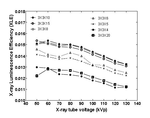 Variation of the X-ray luminescence efficiency (XLE) of the Ce:GAGG crystals with Xray tube voltage