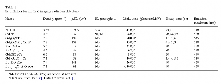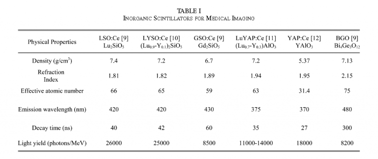 [1] A comparative study of the luminescence properties of LYSO Ce, LSO Ce, GSO Ce and BGO single crystal scintillators for use in medical X-ray imaging